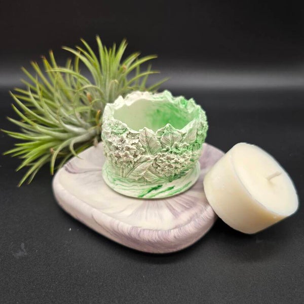 Die kleine Kerzenschale "Kalea" ist ein liebevoll handgemachtes Unikat - ideal für alle, die auf der Suche nach stilvoller Wohnaccessiores-Deko im DIY- oder Handmade-Stil sind. Die Schale wird von Hand aus hochwertiger Gießmasse (Jesin oder Jesmonite) gegossen und eignet sich perfekt als stilvolles Accessoire für Tisch, Regal oder Fensterbank. Dank des filigranen Blumenmusters bringt sie einen Hauch von Romantik und Natürlichkeit in jeden Raum - ob Wohnzimmer, Schlafzimmer oder Bad. Durch die handgegossene Fertigung ist jede Liachtschale ein echtes Einzelstück mit individuellem Charakter.